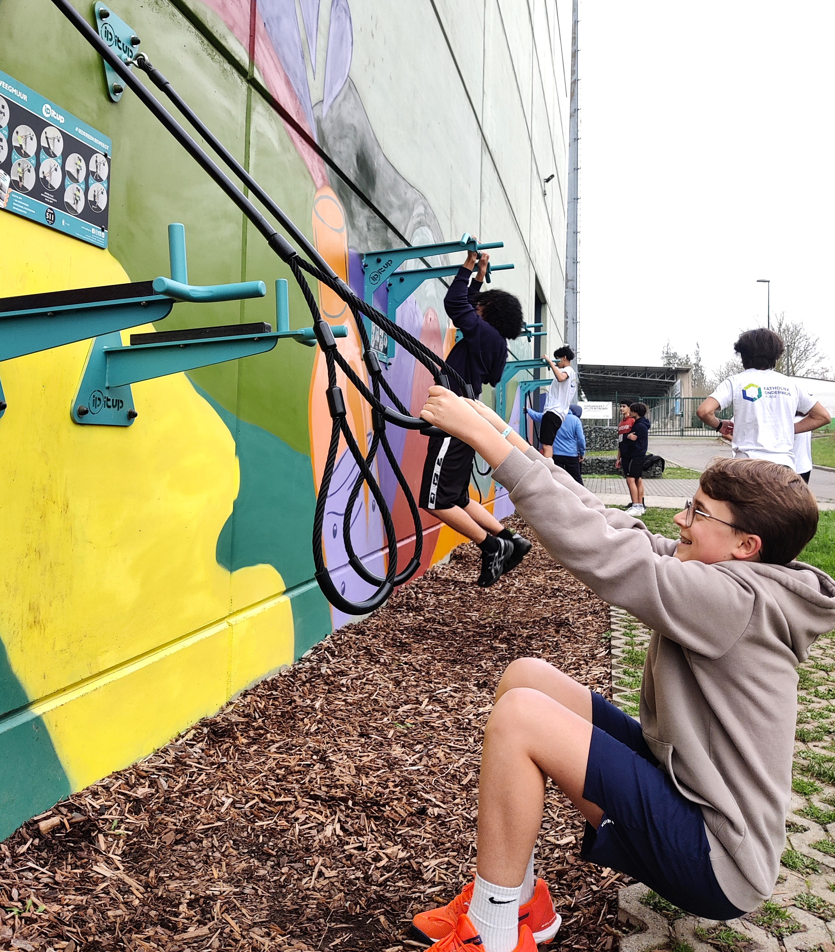 De impact van deze ingreep bleef niet beperkt tot de schoolcontext. Lokaal maakt onder andere een personal trainer wekelijks gebruik van de Beweegmuur voor terugkerende bootcamps, wat bijdraagt aan een bredere communitywerking. Daarnaast zet een leerkracht LO van de nabijgelegen Campus Glorieux Secundair de Beweegmuur in om leerlingen kennis te laten maken met outdoor fitness. De lessen sluiten aan bij de principes van functionele training en krachtontwikkeling, zoals aanbevolen door de WHO.