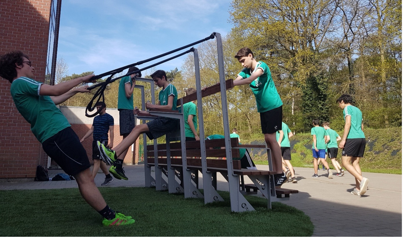 Bij I-mas Hasselt wordt de Beweegbank niet louter ingezet als sportrusting, maar als een volwaardig didactisch instrument binnen het vak lichamelijke opvoeding. Een leerkracht LO van de school koos er bewust voor om zijn lessen te verplaatsen naar de publieke ruimte, waar meerdere Beweegbanken op wandelafstand van elkaar zijn opgesteld. Op die manier vervaagt de grens tussen schoolcontext en leefomgeving, een principe dat sterk aansluit bij het concept van active learning environments zoals beschreven in recent internationaal onderzoek.